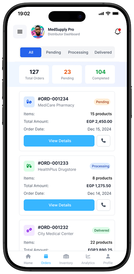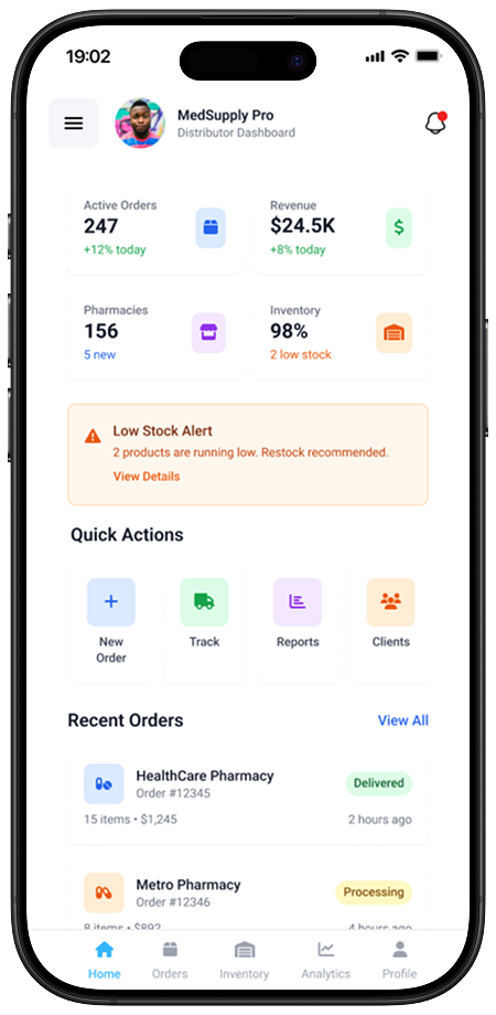 - ربط سلس – منصة موحدة بين المرضى والصيدليات والموزعين.